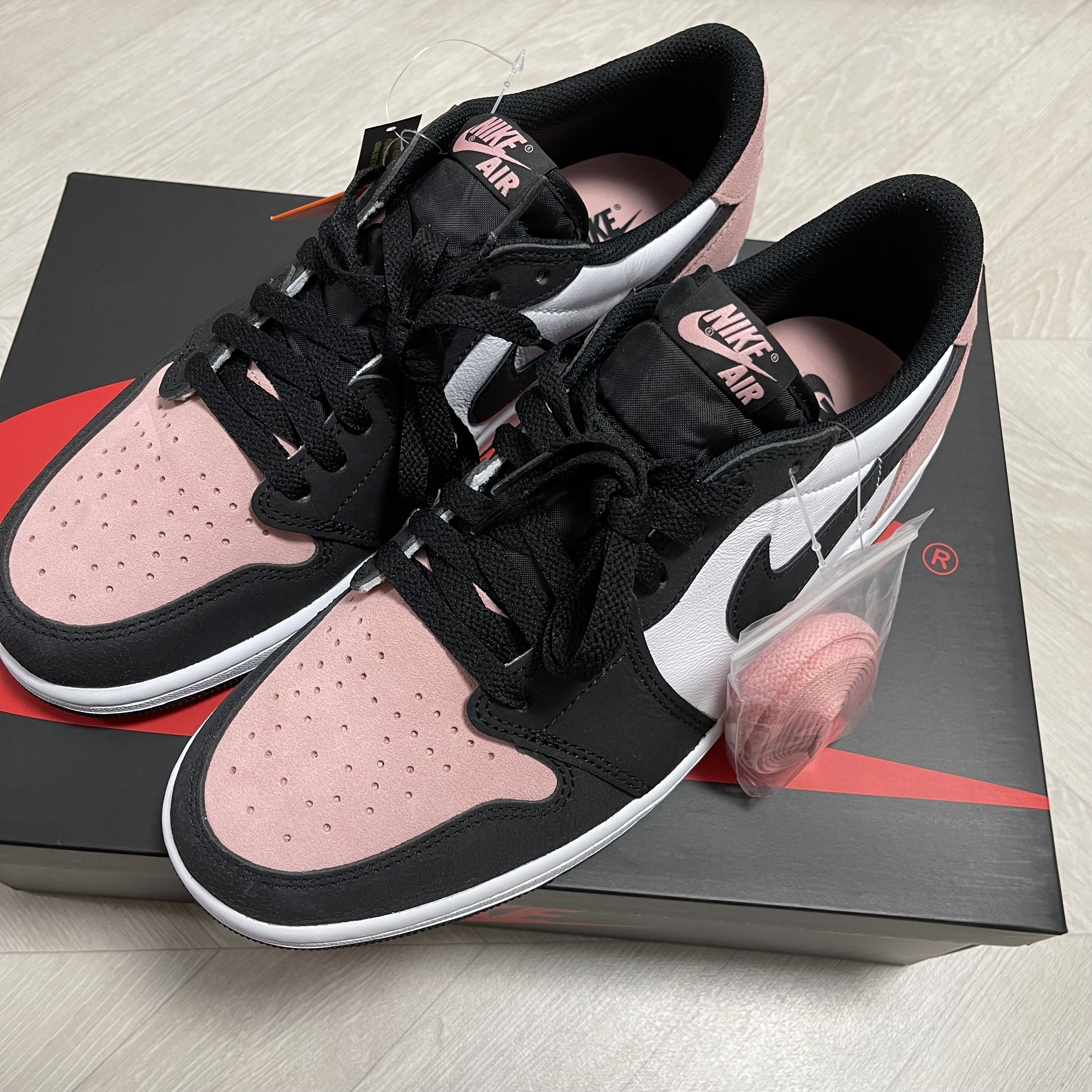 이번에 당첨된 모델은 "조던 1 로우 블리치드 코랄"이었다. 사진보다 실물이 더 예쁘다.
